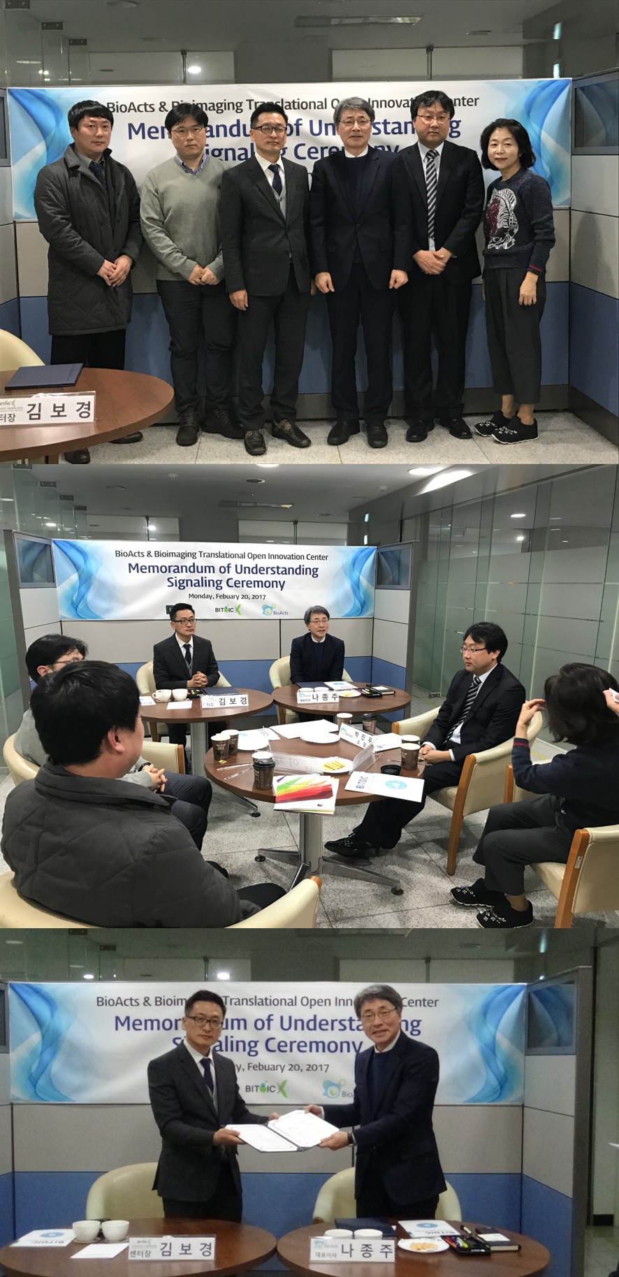 On February 20, 2017, MOU was signed between the Open Innovation Center for Bio Imaging (BIOIC) of Konkuk University and BioActs. Biosimilar analysis and active exchange of academic information will be carried out through friendly cooperation between the two institutions. We will look for products optimized for various fields of experiment and purpose of bio-imaging.