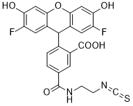 Flamma® Fluors 496 Isothiocyanate is a reactive form of bright green dye induced from fluorescein structure and used to generate a stable fluorescence signal in bioimaging. The maxima of Ex/Em values are at 496/520 nm, similar to that of Alexa 488 and Fluorescein. Flamma 496 might be excited using 488 nm laser line and displays excellent optical property. Isothiocyanates are moderately reactive but quite stable in water and most organic solvents. Isothiocyanates react to primary amine to form reasonably stable thiourea linkage. Whereas labeling of protein with NHS esters can typically be done at pH 8.3, conjugation for isothiocyanates usually require pH above 9. We offer Flamma Fluors 496 isothiocyanate for labeling of antibodies, peptides, proteins, ligands, and amplification substrates optimized for cellular labeling and detection.