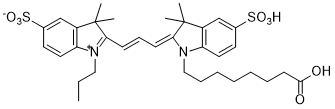 Flamma® Fluors 552 Carboxylic acid is inactive form of bright yellow fluorescent dye induced from cyanine structure and used to generate a stable fluorescence signal in bioimaging. Flamma 552 fluorophore is attached with the octanoic acid. The maxima of Ex/Em values are at 550/564 nm, similar to that of Alexa 555, DyLight 549, ATTO 550 and Cy3. Flamma 552 might be excited using 532, 543, 546 or 555 nm laser lines and displays excellent optical property. Flamma 552 acid might be coupled with primary amine at small molecules or on biomolecules by standard amide bond coupling conditions, or it might be converted to a reactive amine form by using standard chemical techniques. Flamma® Fluors 552 acid can be utilized as a reference standard for dye-conjugates.