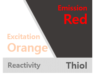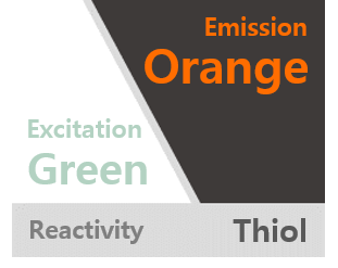Flamma® Fluors 581 Maleimide is a thiol reactive bright yellow dye that used to generate a stable fluorescence signal in bioimaging. The maxima of Ex/Em values are at 578/593 nm, similar to that of Alexa 594 and DyLight 594. Flamma 581 might be excited using 561, 568 or 578 nm laser line and displays excellent optical property. Flamma 581 maleimide can be conjugated to low-abundance of biomolecules with great sensitivity allowing sensitive detection. Maleimides selectively label thiols of cysteine residue via 1,4-addition pathway, without interacting with amines, to form thioether linkage. Maleimides apparently do not react with methionine, histidine or tyrosine, but they might react with primary amines under strong basic environment. BioActs offers Flamma® 581 maleimide for labeling of thiols on antibodies, peptides, proteins, ligands and amplification substrates optimized for cellular labeling and detection.