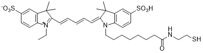 Flamma® Fluors 648 Thiol is inactive form of far-red fluorescent dye induced from cyanine structure and used to generate a stable fluorescence signal in bioimaging. The thiol is attached to Flamma 648 fluorophore through a spacer. The maxima of Ex/Em values are at 648/663 nm, similar to that of Alexa 647, Cy5 and DyLight 650. Flamma 648 might be excited using 593 or 633 nm laser lines and displays excellent optical property. Flamma® Fluors 648 thiol can be labeled to biomolecules through a disulfide bond formation with thiol of cysteine residue or can be utilized as a reference standard for dye-conjugates.