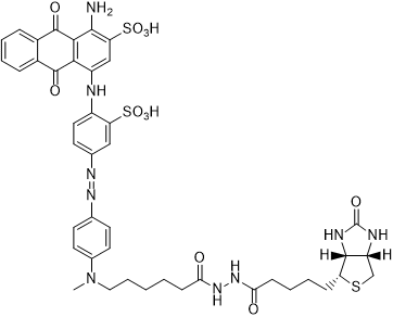 qFlamma® Black01 Biotin is an Avidin and Streptavidin reactive form of universal dark quencher that the range of absorption covers from 400 to 800 nm with no native fluorescence. Black01 quencher displays high absorption coefficient, superb stability and aqueous solubility. Biotin-Avidin/Streptavidin binding has high affinity and specificity, which has been exploited for diverse applications in biochemical and biological research fields. We offer qFlamma® Black01 Biotin as suitable dark quencher for designing a variety of activatable probes for affinity chromatography, PCR, in situ nucleic acid hybridization, multiplexed bio-analysis, etc.
