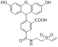FAM Vinylsulfone is pH insensitive reactive form of bright green dye used to generate a stable fluorescence signal in bioimaging. Vinylsulfone reactive group, developed by BioActs’ leading technology, is stable in a wide range of pH and at the high temperature. The maxima of Ex/Em values are at 494/518 nm, similar to that of Alexa 488 and Cy2. FAM might be excited using 488 nm laser line and displays good optical property. Vinylsulfones readily react with primary amines of amino-modified oligonucleotides or of proteins to form a stable amino linkage between dye and the biomolecule.We offer FAM vinylsulfone for labeling of antibodies, peptides, proteins and nucleotide.