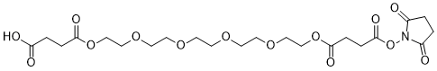 NHS-PEG5-COOH is a mono-functionalized PEG-based crosslinker that one end of pentaethylene glycol derivative is activated as NHS ester and can be used in a range of biological research fields. PEG crosslinkers are hydrophilic and does not penetrate cell membrane and beneficial to transfer their hydrophilic spacer to the crosslinked biomolecule thereby reducing the potential of aggregation and precipitation of the complex. NHS esters readily react with amine-modified oligonucleotides or amino groups of proteins or the amine terminus of nucleotides to form a chemically stable amide bond between dye and the biomolecule. Functionalized crosslinkers are one of well-known protein modification reagents that having a variety of applications in life science research and assay development.