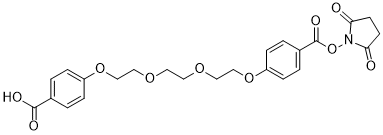 NHS-PEG3B-COOH is a mono-functionalized PEG-based crosslinker that one end of triethylene glycol derivative is activated as NHS ester and can be used in a range of biological research fields. PEG crosslinkers are hydrophilic and does not penetrate cell membrane and beneficial to transfer their hydrophilic spacer to the crosslinked biomolecule thereby reducing the potential of aggregation and precipitation of the complex. NHS esters readily react with amine-modified oligonucleotides or amino groups of proteins or the amine terminus of nucleotides to form a chemically stable amide bond between dye and the biomolecule. Functionalized crosslinkers are one of well-known protein modification reagents that having a variety of applications in life science research and assay development.