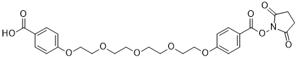 NHS-PEG4B-COOH is a mono-functionalized PEG-based crosslinker that one end of tetraethylene glycol derivative is activated as NHS ester and can be used in a range of biological research fields. PEG crosslinkers are hydrophilic and does not penetrate cell membrane and beneficial to transfer their hydrophilic spacer to the crosslinked biomolecule thereby reducing the potential of aggregation and precipitation of the complex. NHS esters readily react with amine-modified oligonucleotides or amino groups of proteins or the amine terminus of nucleotides to form a chemically stable amide bond between dye and the biomolecule. Functionalized crosslinkers are one of well-known protein modification reagents that having a variety of applications in life science research and assay development.