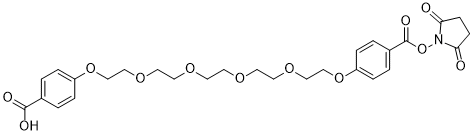 NHS-PEG5B-COOH is a mono-functionalized PEG-based crosslinker that one end of pentaethylene glycol derivative is activated as NHS ester and can be used in a range of biological research fields. PEG crosslinkers are hydrophilic and does not penetrate cell membrane and beneficial to transfer their hydrophilic spacer to the crosslinked biomolecule thereby reducing the potential of aggregation and precipitation of the complex. NHS esters readily react with amine-modified oligonucleotides or amino groups of proteins or the amine terminus of nucleotides to form a chemically stable amide bond between dye and the biomolecule. Functionalized crosslinkers are one of well-known protein modification reagents that having a variety of applications in life science research and assay development.