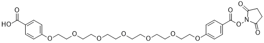 NHS-PEG6B-COOH is a mono-functionalized PEG-based crosslinker that one end of hexaethylene glycol derivative is activated as NHS ester and can be used in a range of biological research fields. PEG crosslinkers are hydrophilic and does not penetrate cell membrane and beneficial to transfer their hydrophilic spacer to the crosslinked biomolecule thereby reducing the potential of aggregation and precipitation of the complex. NHS esters readily react with amine-modified oligonucleotides or amino groups of proteins or the amine terminus of nucleotides to form a chemically stable amide bond between dye and the biomolecule. Functionalized crosslinkers are one of well-known protein modification reagents that having a variety of applications in life science research and assay development.