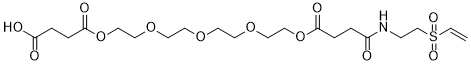 Vinylsulfone-PEG4-COOH is a mono-functionalized PEG-based crosslinker that one end of tetraethylene glycol derivative is activated as vinylsulfone and can be used in a range of biological research fields. PEG crosslinkers are hydrophilic and does not penetrate cell membrane and beneficial to transfer their hydrophilic spacer to the crosslinked biomolecule thereby reducing the potential of aggregation and precipitation of the complex. Vinylsulfone reactive group, developed by BioActs’ leading technology, is stable in a wide range of pH and at the high temperature and reacts with primary amines. Functionalized crosslinkers are one of well-known protein modification reagents that having a variety of applications in life science research and assay development.