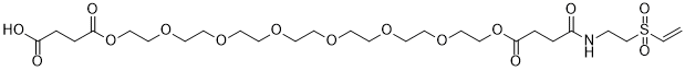 Vinylsulfone-PEG7-COOH is a mono-functionalized PEG-based crosslinker that one end of heptaethylene glycol derivative is activated as vinylsulfone and can be used in a range of biological research fields. PEG crosslinkers are hydrophilic and does not penetrate cell membrane and beneficial to transfer their hydrophilic spacer to the crosslinked biomolecule thereby reducing the potential of aggregation and precipitation of the complex. Vinylsulfone reactive group, developed by BioActs’ leading technology, is stable in a wide range of pH and at the high temperature and reacts with primary amines. Functionalized crosslinkers are one of well-known protein modification reagents that having a variety of applications in life science research and assay development.