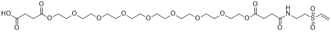 Vinylsulfone-PEG8-COOH is a mono-functionalized PEG-based crosslinker that one end of octaethylene glycol derivative is activated as vinylsulfone and can be used in a range of biological research fields. PEG crosslinkers are hydrophilic and does not penetrate cell membrane and beneficial to transfer their hydrophilic spacer to the crosslinked biomolecule thereby reducing the potential of aggregation and precipitation of the complex. Vinylsulfone reactive group, developed by BioActs’ leading technology, is stable in a wide range of pH and at the high temperature and reacts with primary amines. Functionalized crosslinkers are one of well-known protein modification reagents that having a variety of applications in life science research and assay development.
