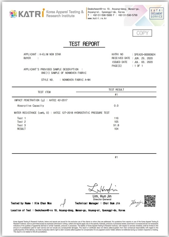 Certification : CE, FDA, AATCC42, AATCC127 (protection against radioactive contamination).