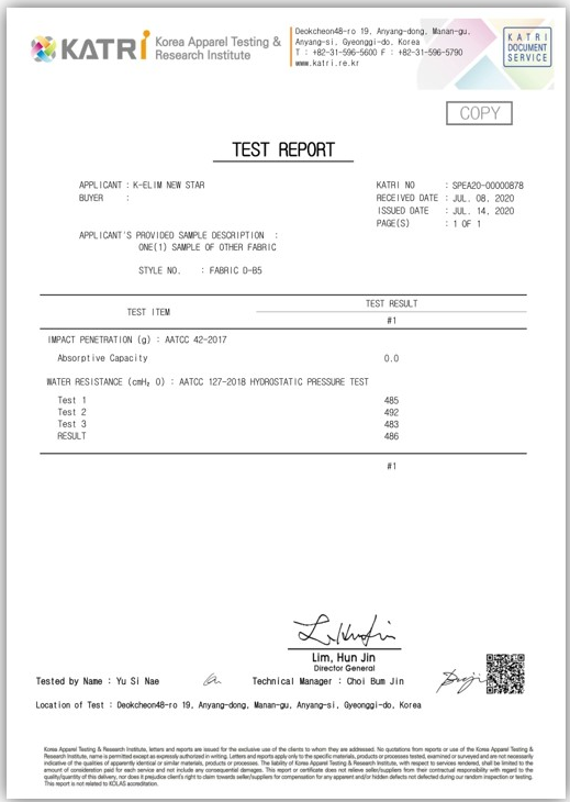 Certification : CE, FDA, AATCC42, AATCC127 (protection against radioactive contamination).